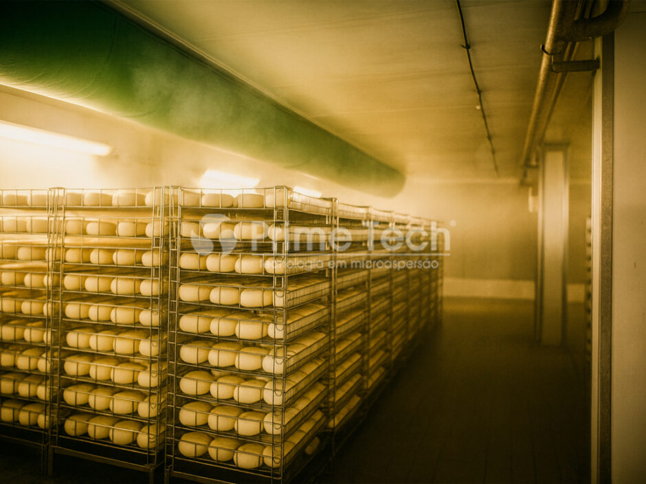 Ao gerar micropartículas de 5 a 10 micra, nossos sistemas permitem a reposição controlada da umidade relativa perdida pelo ar refrigerado — sem molhar os produtos.